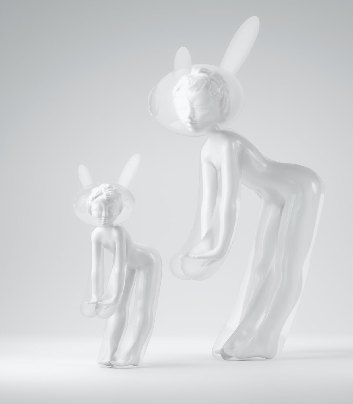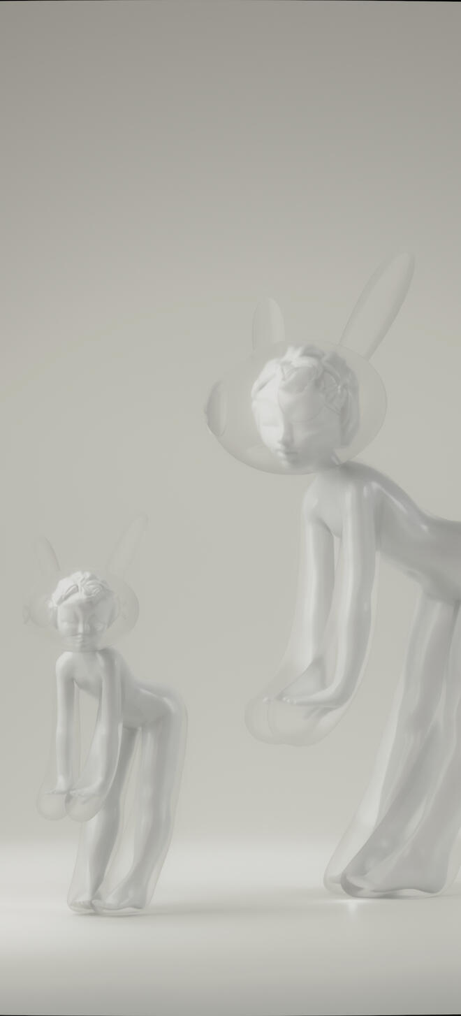 Betty is a dream quality sculpture, and not a toy, nor a figurine. She is made of clean accurate uv-cured filament, you can order her in 8 inches or 15 inches proportionally. I created this figure with the specific idea in mind, a figment of American post war culture. The outer shell is the result of a concept called Bubbie, this is one of the first expansions on that pop impression. Where in which a soft gentle young adult figure of true delicacy - has been encased inside of or placed within the outline of Bubbie.