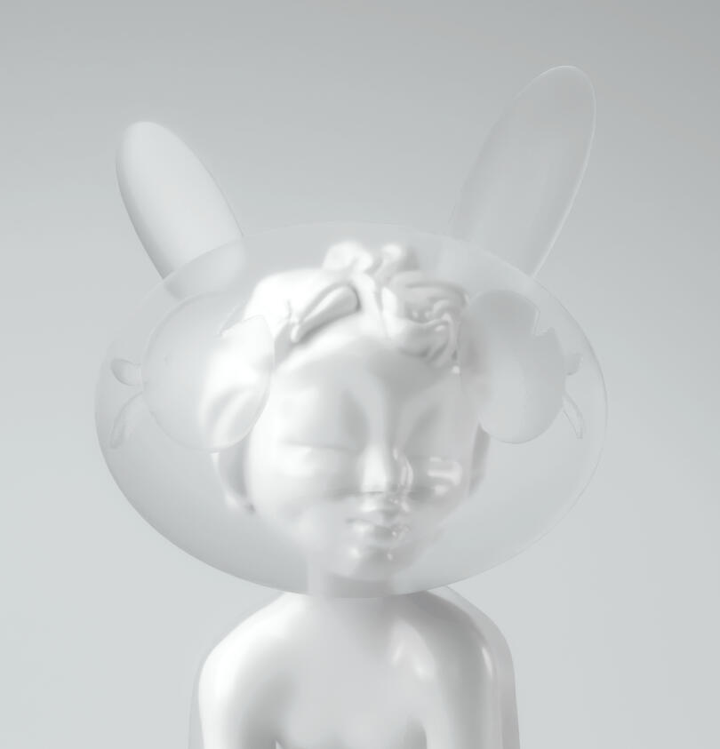 Betty is a dream quality sculpture, and not a toy, nor a figurine. She is made of clean accurate uv-cured filament, you can order her in 8 inches or 15 inches proportionally. I created this figure with the specific idea in mind, a figment of American post war culture. The outer shell is the result of a concept called Bubbie, this is one of the first expansions on that pop impression. Where in which a soft gentle young adult figure of true delicacy - has been encased inside of or placed within the outline of Bubbie.